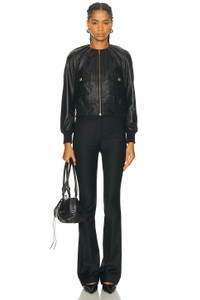 Details - Self: 100% sheep leather - Lining: 100% polyester - Professional leather clean only - Front zip closure - Breast snap button pockets - Elasticized ribbed trim - Cropped fit - Midweight leather fabric - Made in India - Our Style No. R13-WO196 - Manufacturer Style No. R13WR492-R426A