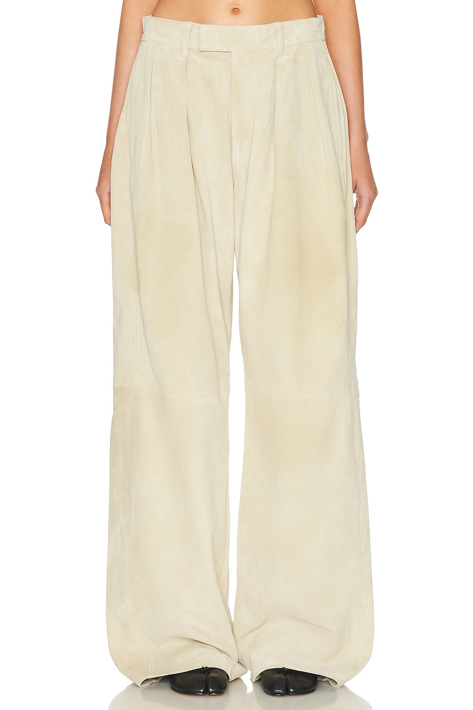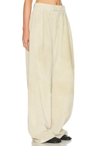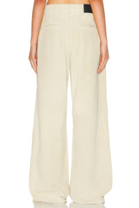Details - Self: 100% sheep leather - Lining: 100% polyester - Professional leather cleaning only - Zip fly with button closure - Side seam pockets - Back seam pockets - Logo patch at back waist - Suede fabric with front pleated detail - Item not sold as a set - Made in India - Our Style No. R13-WP109 - Manufacturer Style No. R13WR440-R547A