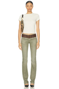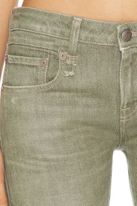 Details - Self 1: 99% cotton, 1% elastane - Self 2: 100% genuine leather - Lining: 65% polyester, 35% cotton - Made in Italy - Machine wash - Zip fly with button closure - 5-pocket design - Stretch denim fabric - Our Style No. R13-WJ314 - Manufacturer Style No. R13WD091 D289A