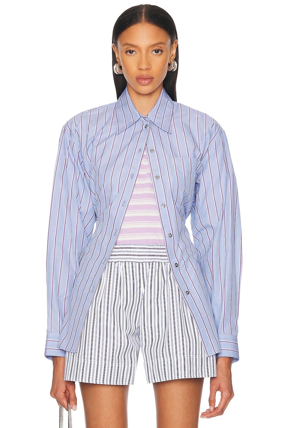 STRIPED WHITE AND BLUE SHIRT IN COTTON POPLIN