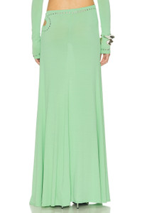 Studded gathered cutout jersey maxi skirt Light green