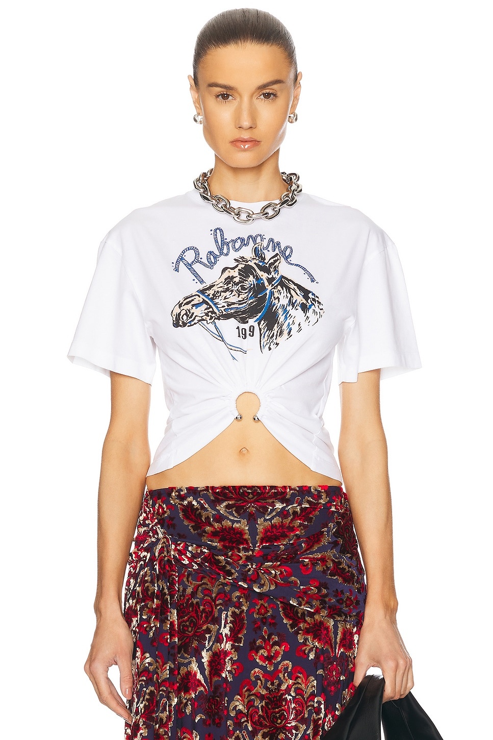 Details - 100% cotton - Made in Portugal - Machine wash - Front graphic detail - Cropped fit with silver-tone hardware detail at front - Jersey fabric - Our Style No. PCRB-WS116 - Manufacturer Style No. 25PJTE005CO0494
