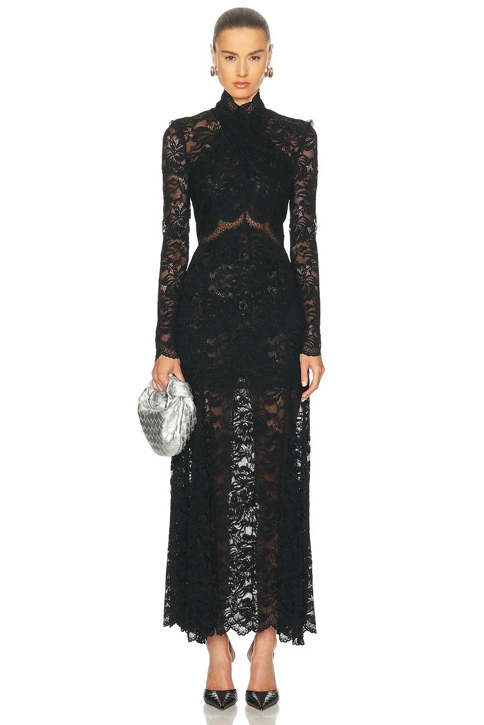 LONG LACE DRESS WITH CUT-OUT DETAILS