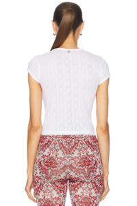 WHITE CROP TEE-SHIRT IN JERSEY POINTELLE