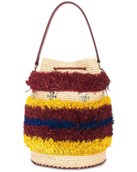 Details - Unlined raffia and paper mch exterior - Drawcord closure - One main compartment - Detachable shoulder straps - Gold-tone hardware - Measures approx 13 cm W x 25 cm H x 13 cm D - Shoulder strap with a 38 cm drop - Top handle with a 18 cm drop - This item is not available to ship to Australia - Made in Madagascar - Our Style No. PCRB-WY63 - Manufacturer Style No. 25ASS0478NAT061