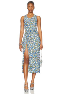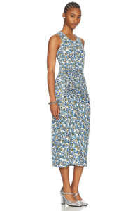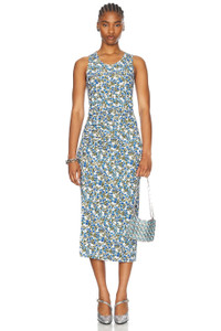 Blue Flower Print Midi Dress