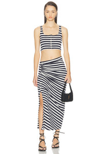 Striped Draped Midi Skirt