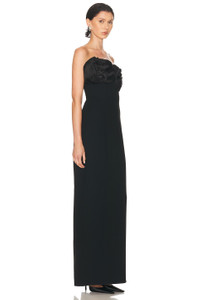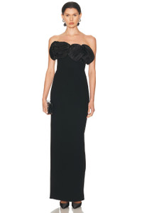Details - Self 1: 71% acetate, 29% polyester - Self 2: 100% silk - Lining: 100% polyester - Dry clean only - Fully lined - Hidden back zipper closure - 3D floral design at bust - Crepe fabric - Made in China - Our Style No. RERF-WD60 - Manufacturer Style No. 25PFRG61958.BLK