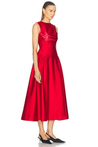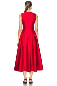 Details - Self: 62% wool, 48% silk - Self 2: 73% acetate, 27% polyester - Lining: 100% polyester - Made in China - Dry clean only - Fully lined - Hidden back zipper closure - Satin fabric with overlay at breast - Fit and flare design - Our Style No. RERF-WD43 - Manufacturer Style No. 24SSRG61895.RED