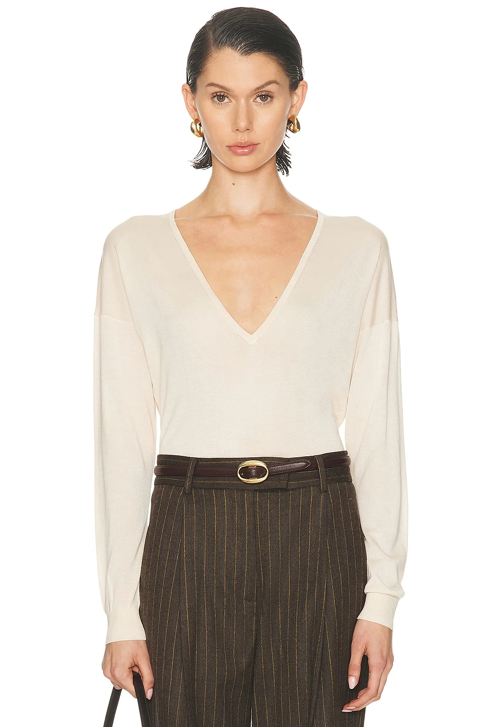 Details - 85% Silk, 15% Cashmere - Hand wash - Pullover styling - V-neck style - Cinched hem - Made in China - Our Style No. RGLF-WK12 - Manufacturer Style No. RE0725K04-Y003
