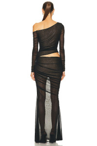 Details - Self: 100% polyester - Lining: 89% polyester, 11% spandex - Made in China - Dry clean only - Fully lined - Side zipper closure - Mesh fabric with tonal crystal embellishments - Our Style No. RTFF-WD477 - Manufacturer Style No. R24-7970