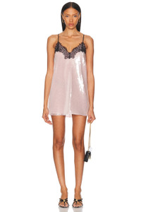 Details - Self 1 & Lining: 100% polyester - Self 2: 100% nylon - Self 3: 95% viscose, 5% spandex - Self 4: 97% polyester, 3% spandex - Made in China - Hand wash - Fully lined - Pull-on styling - Adjustable shoulder straps - Sequin embellished fabric with lace trim - Our Style No. RTFF-WD645 - Manufacturer Style No. PF24-9570
