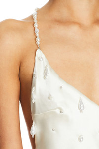 Details - Self: 76% acetate, 24% polyester - Lining: 95% polyester, 5% lycra - Dry clean only - Fully lined - Halterneck lobster clasp closure - Hidden side zipper closure - Deep scoop neckline at back - Beaded embellishment - Satin fabric - Made in India - Our Style No. RTFF-WD677 - Manufacturer Style No. R-PF25-11566-17