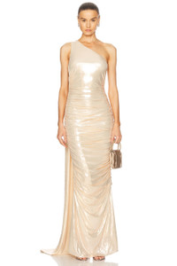 Details - Self: 92% polyester, 8% spandex - Lining: 95% polyester, 5% spandex - Made in China - Hand wash - Fully lined - Hidden back zip closure - One shoulder styling with adjustable strap and draped accent - Heavyweight ruched jersey fabric - Our Style No. RTFF-WD619 - Manufacturer Style No. R25-10963