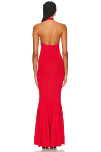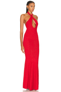Details - 60% rayon, 32% nylon, 5% metallic, 3% spandex - Made in China - Dry clean only - Unlined - Pull-on halterneck styling - Keyhole cut-out at bust - Midweight ribbed knit fabric with metallic threading throughout and subtle flounce hem - Our Style No. RTFF-WD452 - Manufacturer Style No. HL24-8146