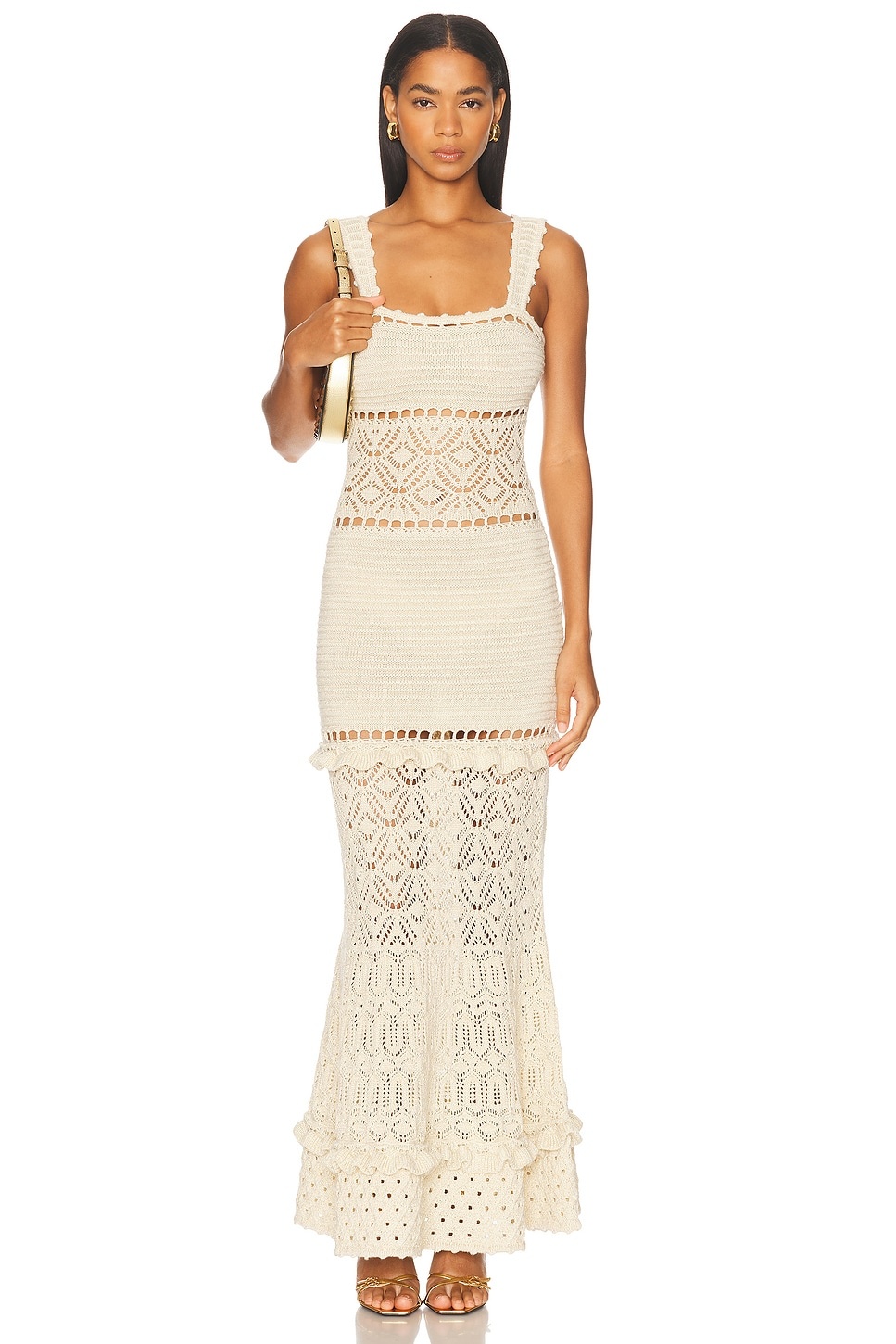 Details - 84% cotton, 16% polyester - Hand wash - Unlined - Pull-on styling - Front and back square neckline - Open crochet knit fabric with metallic threading - Garment is made with a semi-sheer fabric, undergarments can show through - Made in China - Our Style No. RTFF-WD666 - Manufacturer Style No. R-SS25-11325-17