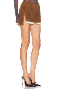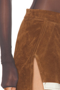 Details - Self: 100% calf leather - Lining 1: 94% cupro, 6% elastane - Lining 2: 52% polyester, 48% cotton - Professional leather cleaning only - Fully lined - Exposed back zipper closure - Low-rise fit - Genuine suede fabric with asymmetrical hem - This item is not available for international export - Made in Moldova - Our Style No. RICK-WQ99 - Manufacturer Style No. RP02E4371-LCS