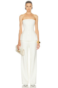 Details - Self: 52% wool, 48% polyester - Lining 1: 95% viscose, 5% elastane - Lining 2: 87% polyester, 13% elastane - Made in Canada - Dry clean only - Back zipper closure - Front button closure - Boned bodice - Crepe fabric - Our Style No. ROLA-WC8 - Manufacturer Style No. RM-AW24-059JS-C