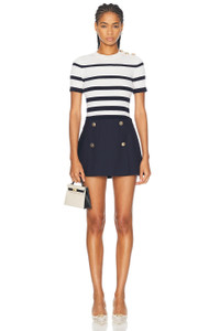 Details - Self: 50% wool, 50% polyester - Lining: 55% viscose, 45% polyester - Made in China - Dry clean only - Fully lined - Hidden side zipper closure - Front pleated design with faux button detail - Twill fabric - Our Style No. RONR-WQ186 - Manufacturer Style No. 4019052SUI