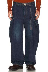 Details - 100% cotton - Dry clean only - Zip fly with button closure - 6-pocket design - Detachable belt with silver-tone buckle closure - Intentional fading - Heavyweight denim fabric - Made in Japan - Our Style No. SACF-MJ3 - Manufacturer Style No. 25-03755M-401