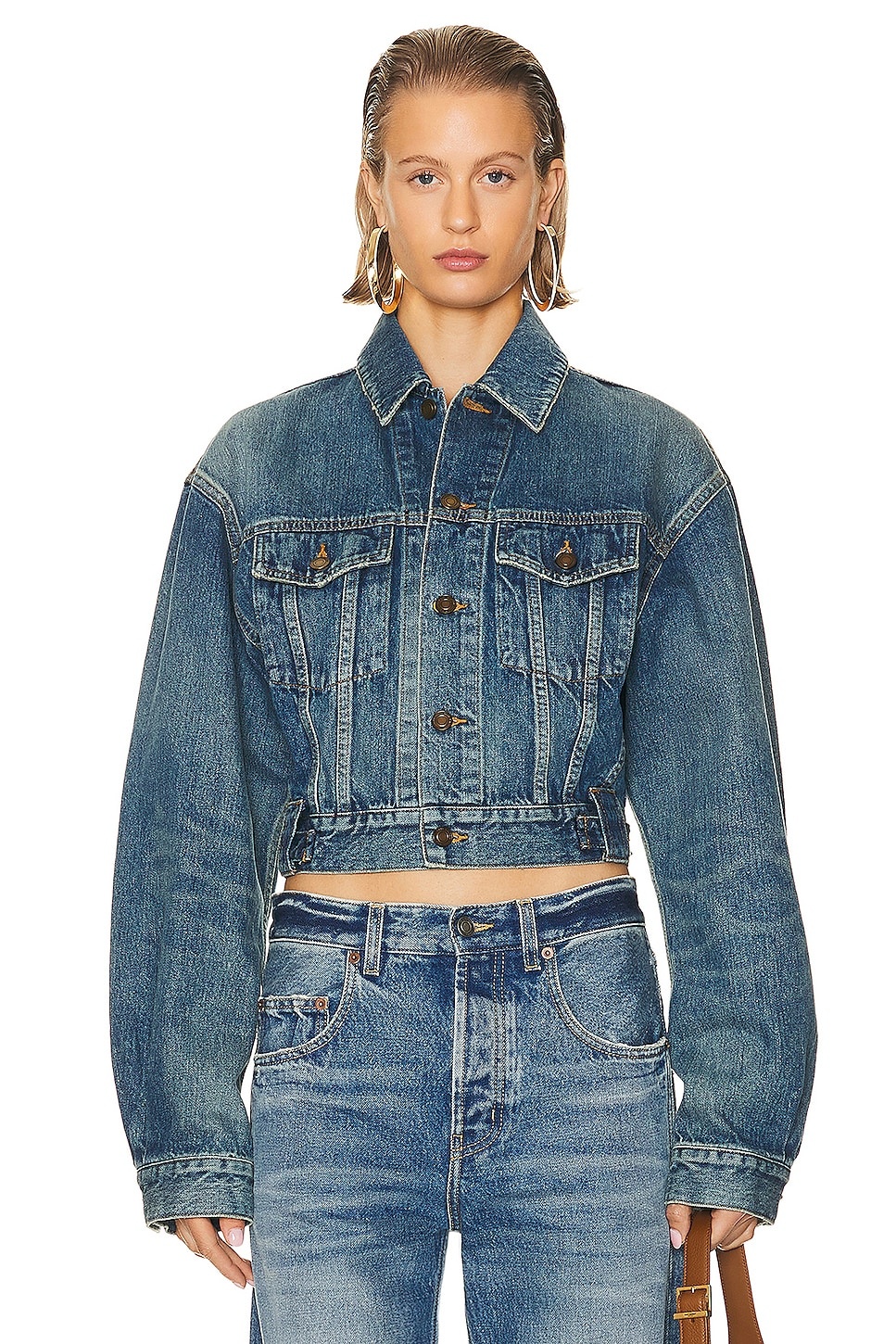 Details - 100% viscose - Made in Italy - Dry clean only - Front button closure with button cuffs - Breast button pockets - Adjustable strap at back - Rigid denim fabric - This item is not available to ship to Indonesia - Our Style No. SLAU-WO233 - Manufacturer Style No. 771838-Y11YC-5092