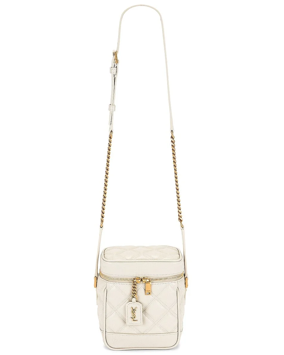 Details - Carré-quilted calfskin leather with grosgrain lining and bronze-tone hardware - Made in Italy - Two-way zip-around closure - One main compartment - Interior flat pocket - YSL monogram tag - Measures approx 5.7" W x 6.4" H x 3.5"D - Adjustable shoulder strap drop measures approx 18" in length - This item is not available to ship to Indonesia - Our Style No. SLAU-WY1524 - Manufacturer Style No. 649779-12H17-9207