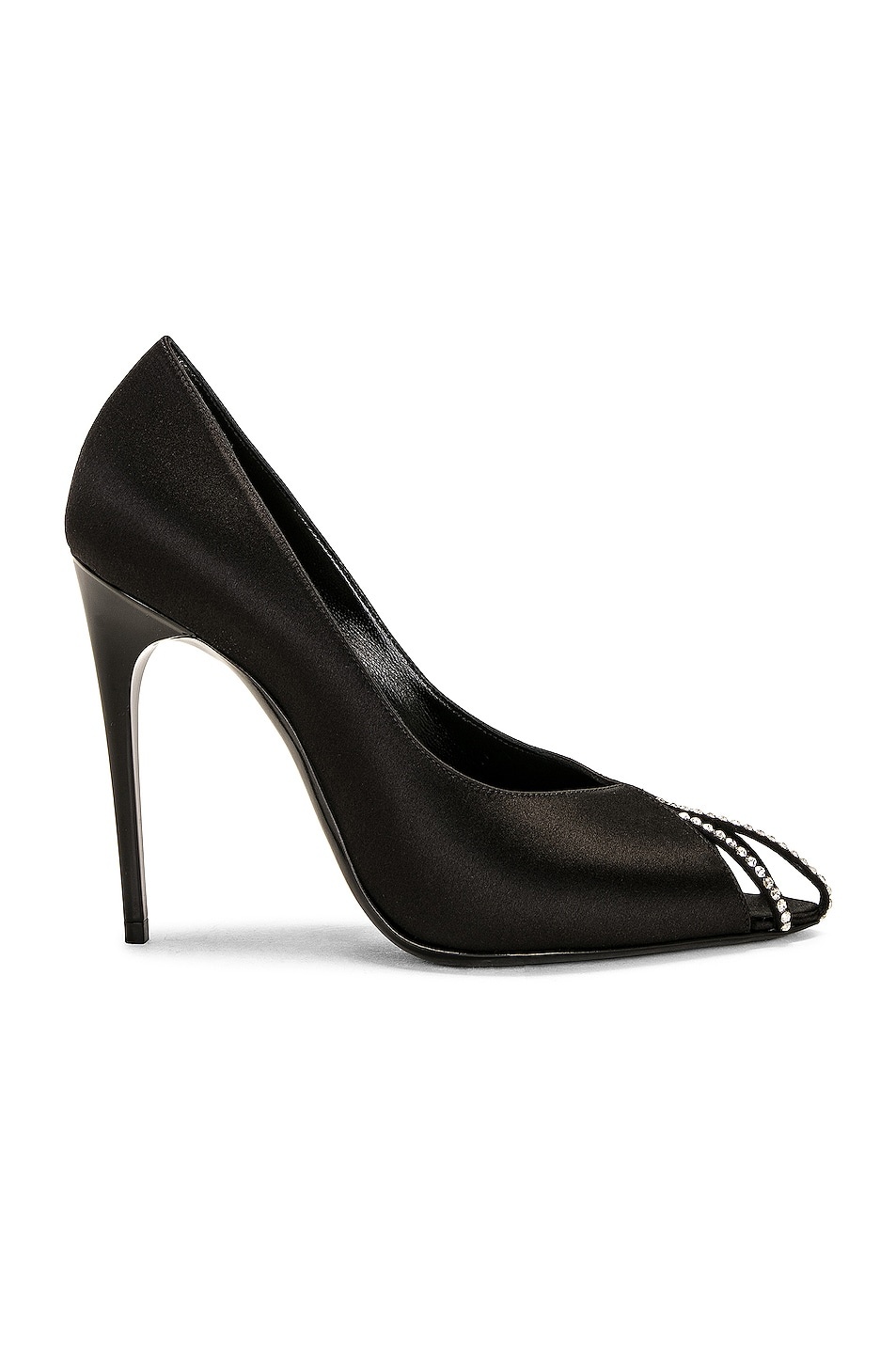 Details - Satin and textile upper with leather sole - Made in Italy - Leather footbed and lining - Pointed openworked toes embellished with glittering rhinestones - Stiletto heel - Approx 108mm/ 4.25 inch heel - This item is not available to ship to Indonesia - Our Style No. SLAU-WZ1076 - Manufacturer Style No. 742171-9QN0A-1066