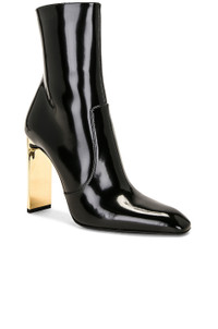 Details - Patent leather upper with leather sole - Made in Italy - Side zipper closure - Leather footbed and lining - Pointed toe with gold-tone narrow block heel - Approx 100mm/ 4 inch heel - Approx 159mm/ 6.25 inch shaft - This item is not available to ship to Indonesia - Our Style No. SLAU-WZ1115 - Manufacturer Style No. 755201-AACGX-1000
