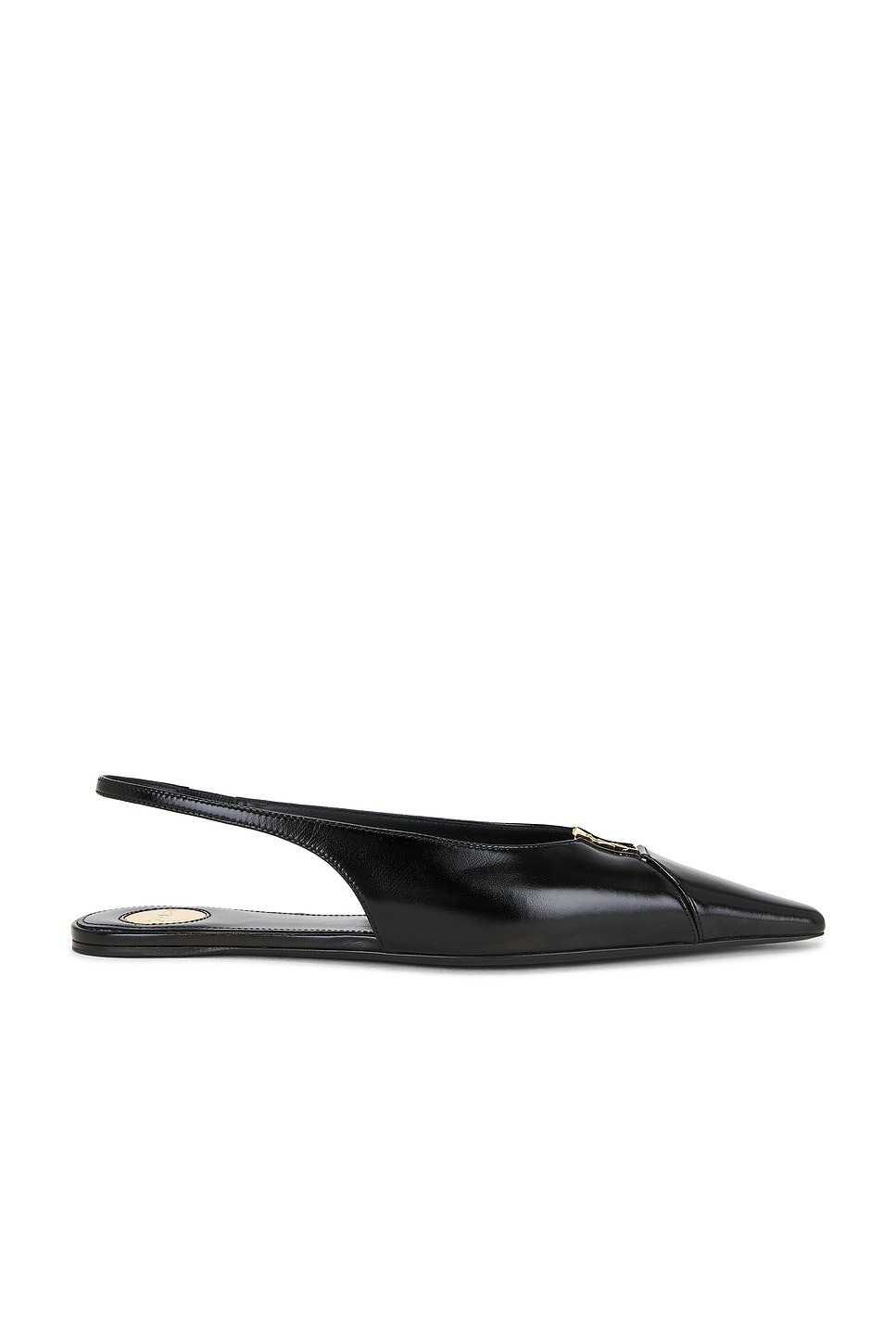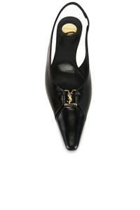 Details - Calfskin leather upper with leather sole - Slingback styling with elasticized strap - Leather footbed and lining - Gold-tone cassandre hardware at front - Pointed toe - This item is not available to ship to Indonesia - Made in Italy - Our Style No. SLAU-WZ1463 - Manufacturer Style No. 800240-AAEHI-1000