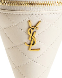 Details - Quilted leather exterior with leather lining and gold-tone hardware - Made in Italy - Top zipper closure - One main compartment - Interlocking YSL initials on front - Measures approx 8 cm W x 13 cm H x 8 cm D - Wristlet with a 18 cm drop - This item is not available to ship to Indonesia - Our Style No. SLAU-WY2961 - Manufacturer Style No. 820386-1EL07-9207