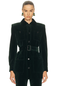 Details - Self: 100% cotton - Lining: 100% silk - Dry clean only - Front button closure - Padding at shoulders - Tonal belt at waist - 4-front pocket design - Velvet fabric - Item not sold as a set - This item is not available to ship to Indonesia - Made in Italy - Our Style No. SLAU-WO273 - Manufacturer Style No. 835170-Y580T-3181