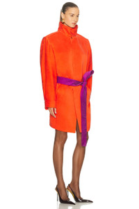 Details - 100% silk - Dry clean only - Front button closure - Detachable belt with tie closure - Front slant pockets - Padded shoulders - Heavyweight satin fabric - This item is not available to ship to Indonesia - Made in Italy - Our Style No. SLAU-WO281 - Manufacturer Style No. 843316-Y5J30-6641