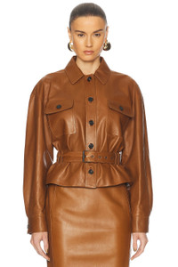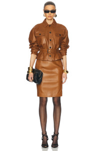Details - Self: 100% leather - Lining: 100% silk - Made in Italy - Professional leather clean only - Front button closure - Adjustable belt with buckle closure and breast button pockets - Midweight leather fabric - Item not sold as a set - This item is not available to ship to Indonesia - Our Style No. SLAU-WO253 - Manufacturer Style No. 815251-Y5OA2-2576