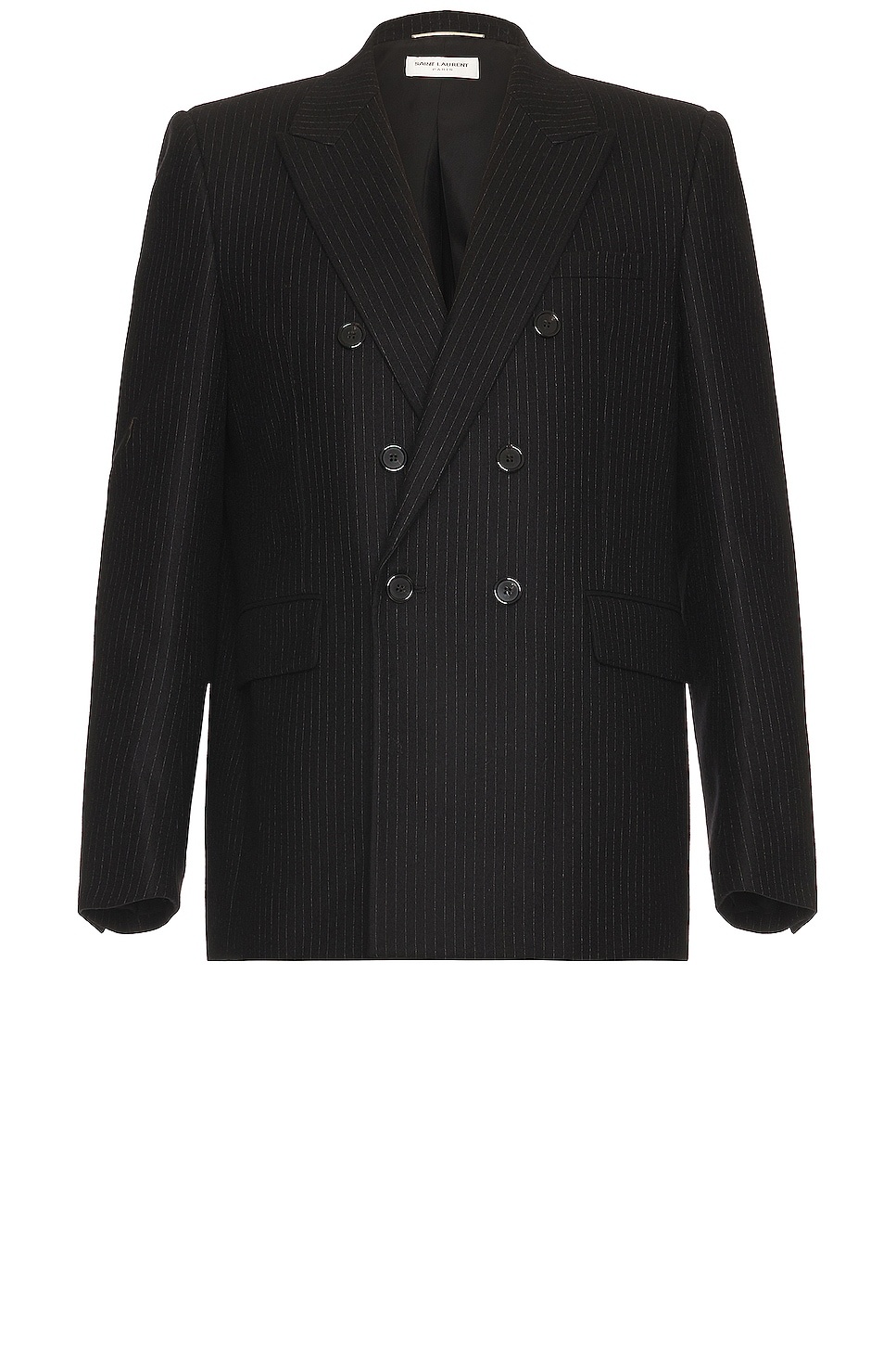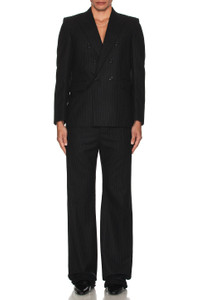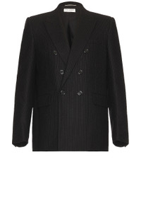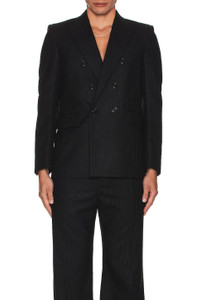 Details - Self: 98% wool, 2% cotton - Lining: 100% silk - Pocket Lining: 97% cotton, 3% elastane - Made in Italy - Dry clean only - Double-breasted with button closure - Padded shoulders with button accents at cuffs - Chest welt pocket and front flap pockets - Interior welt pockets - Suiting fabric with back vent - This item is not available to ship to Indonesia - Our Style No. SLAU-MO111 - Manufacturer Style No. 759981Y2F40