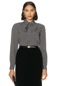 Details - 100% silk - Made in Italy - Dry clean only - Front button closure - Attached tie detail at neckline - Button cuffs - Lightweight matte charmeuse fabric - This item is not available to ship to Indonesia - Our Style No. SLAU-WS323 - Manufacturer Style No. 708400-Y6F17-1095