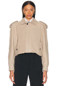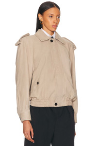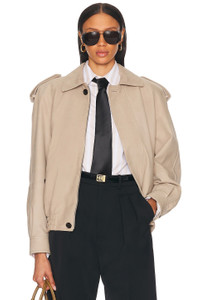 Details - Self: 100% calfskin leather - Lining 1: 60% cupro, 40% cotton - Lining 2: 100% cotton - Professional leather clean only - Front zip with button closure - Front slant pockets - Epaulette detailing - Padded shoulders - Button cuffs - Heavyweight leather fabric - This item is not available to ship to Indonesia - Made in Italy - Our Style No. SLAU-WO262 - Manufacturer Style No. 827736-YCQN2-1242