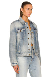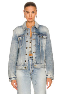 Details - 100% cotton - Made in Italy - Machine wash - Front button closures - Buttoned cuffs - Breast flap pockets and side welt pockets - Adjustable button tab hem - Light distressing - Calf skin leather Saint Laurent logo at inside yoke - This item is not available to ship to Indonesia - Our Style No. SLAU-WO200 - Manufacturer Style No. 695156-Y31KA-4055