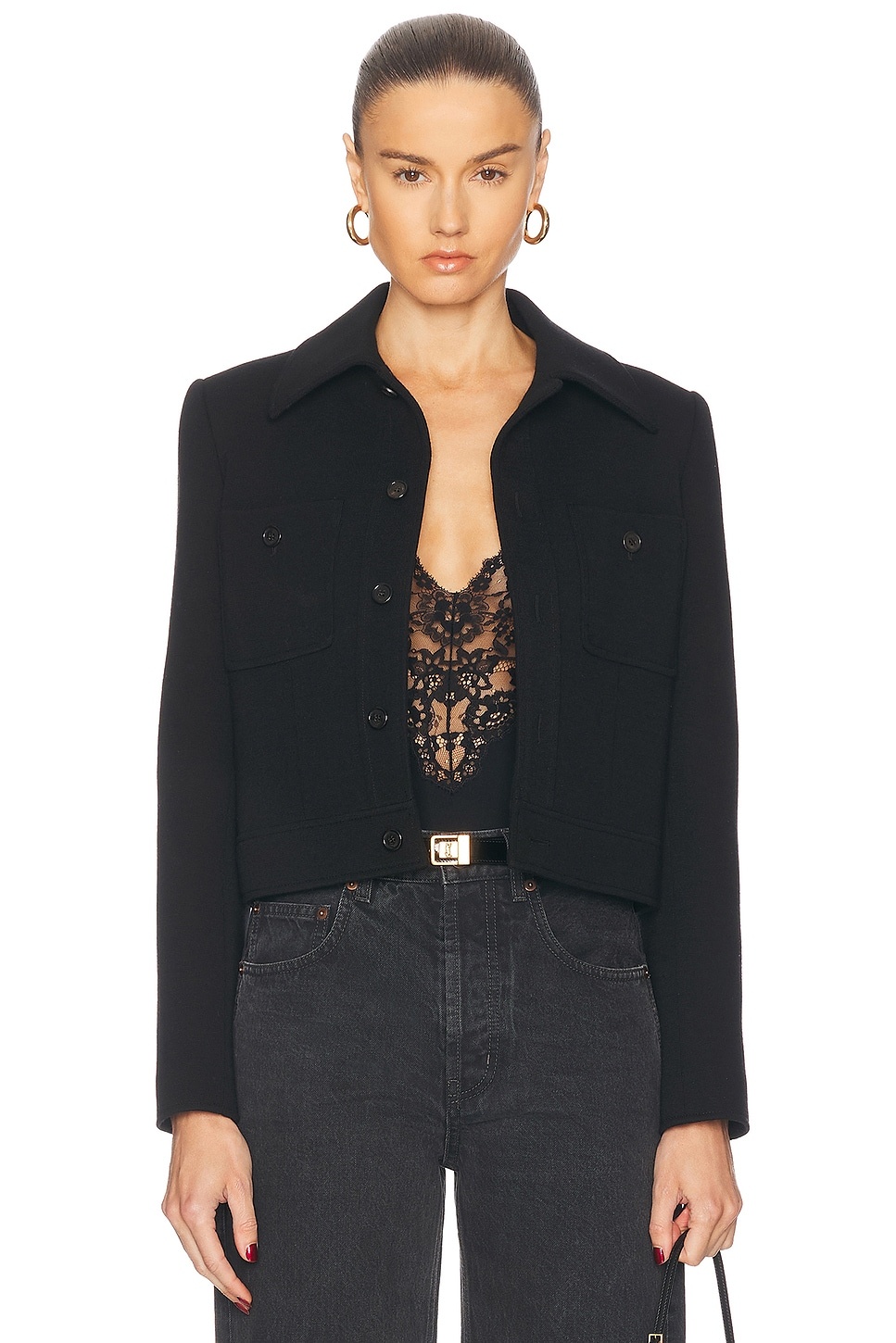 Details - Self: 80% wool, 20% polyamide - Lining: 100% silk - Pocket Lining: 97% cotton, 3% elastane - Made in Italy - Dry clean only - Front button closure - Light padding at shoulders - Breast patch pockets with button closures - Buttoned cuffs - Twill fabric - This item is not available to ship to Indonesia - Our Style No. SLAU-WO256 - Manufacturer Style No. 822169-Y288V-1000