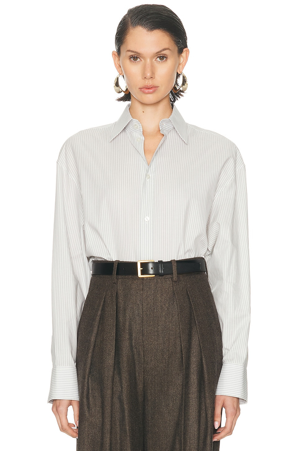 Details - 96% cotton, 4% viscose - Dry clean - Exposed front button closure - Buttoned cuffs - This item is not available to ship to Indonesia - Made in Italy - Our Style No. SLAU-WS477 - Manufacturer Style No. 835517-Y5K67-9087