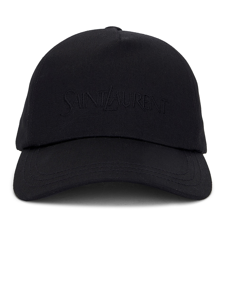 Details - Self: 75% cotton, 25% linen - Lining: 80% polyester, 20% cotton - Border: 100% cotton - Made in Bulgaria - Do not wash - Embroidered Saint Laurent logo at front - Back adjustable strap - Brim measures approx 2.5" in length - Size 57 measures approx 24-26" in circumference - This item is not available to ship to Indonesia - Our Style No. SLAU-MA70 - Manufacturer Style No. 778063 3YP19