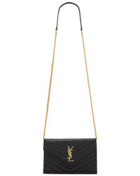 Details - Leather exterior with leather lining - Made in Italy - Flap top with magnetic button closure and gold-tone YSL hardware - One main compartment - Six interior card slots and one bill slot - Interior zipper pocket - Detachable gold-tone chain strap with leather reinforcement - Measures approx 7.5" W x 4" H x 1.5" D - Shoulder strap with a 21.5" drop - This item is not available to ship to Indonesia - Our Style No. SLAU-WY2230 - Manufacturer Style No. 742920-BOW01-1000