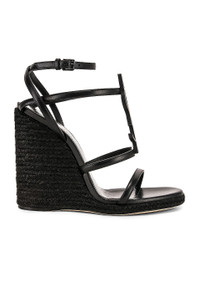 Details - Calf leather upper and leather sole - Made in Italy - Approx 115mm/ 4.5 inch woven wedge - Wrap around ankle strap with buckle closure - Interlocking logo accent on front - This item is not available to ship to Indonesia - Our Style No. SLAU-WZ435 - Manufacturer Style No. 557208 0MUUU