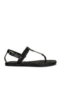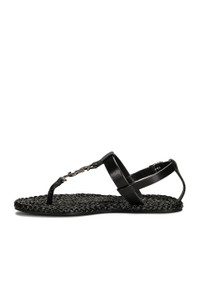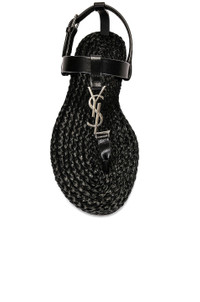 Details - Leather upper with rubber sole and aged silver-tone hardware - Made in Italy - Side buckle closure - T-strap with interlaced YSL hardware - Woven raffia footbed - Round toe - This item is not available to ship to Indonesia. This item is not available to ship to Australia - Our Style No. SLAU-WZ948 - Manufacturer Style No. 688692-DWELL-1000