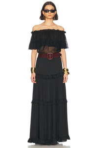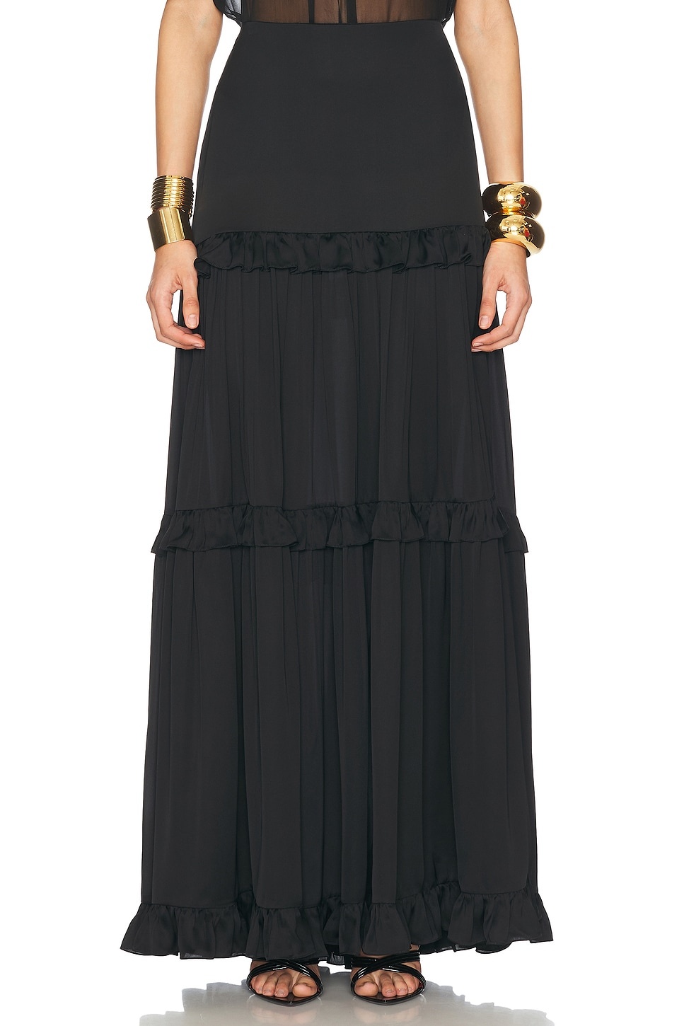 Details - 100% silk - Made in Italy - Dry clean only - Unlined - Hidden side zipper closure - High-waisted fit - Satin fabric with tiered ruffle detail - This item is not available to ship to Indonesia - Our Style No. SLAU-WQ108 - Manufacturer Style No. 823069-Y720W-1000