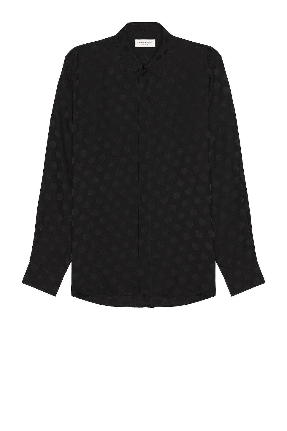 Details - 100% silk - Made in Italy - Dry clean only - Front button closure - Button cuffs - Tonal polka dots throughout - Lightweight matte charmeuse fabric - This item is not available to ship to Indonesia - Our Style No. SLAU-MS171 - Manufacturer Style No. 646850 Y1I44