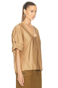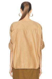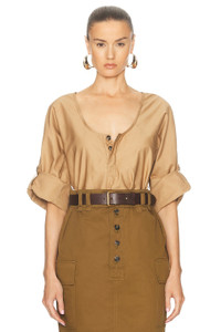 Details - 86% cotton, 14% linen - Made in Italy - Dry clean only - Pull-on styling - Henley collar with hidden 3-button placket - Upturned cuffs with button tab - Twill fabric - This item is not available to ship to Indonesia - Our Style No. SLAU-WS404 - Manufacturer Style No. 790080-Y7I17-2495