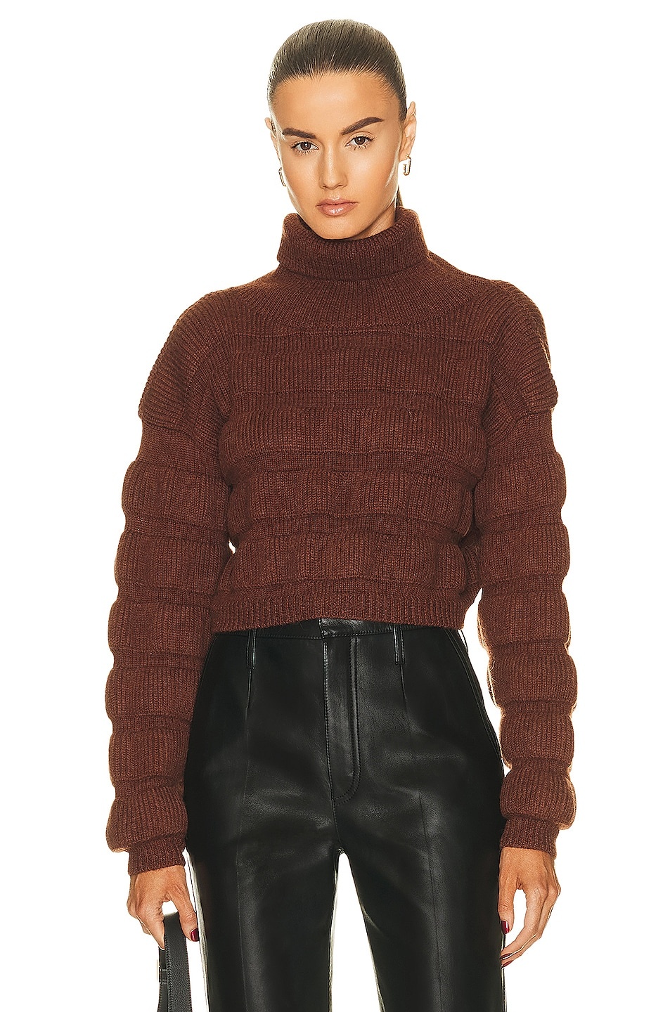Details - 50% wool, 50% alpaca - Made in Italy - Dry clean only - Turtleneck styling - Midweight wide ribbed knit fabric - This item is not available to ship to Indonesia - Our Style No. SLAU-WK95 - Manufacturer Style No. 705699Y75QF