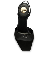 Details - Leather and satin upper with leather sole - Made in Italy - Slingback styling - crystal-encrusted buckles - Leather lining - Angled square toe - Kitten heel - Approx 2.0 inch heel - This item is not available to ship to Indonesia - Our Style No. SLAU-WZ1515 - Manufacturer Style No. 844411-9QNB0-1000