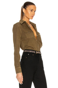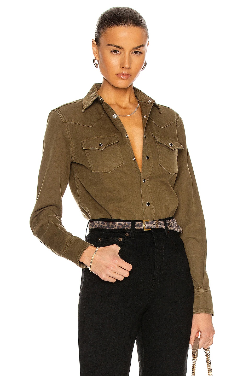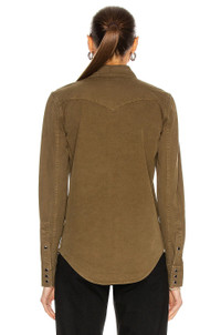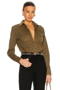 Details - 100% cotton - Made in Japan - Dry clean only - Front snap button closure with black enameled accents - Chest flap pockets - Western yoke - Barrel cuffs with button closure - Lightly faded throughout - Shirttail hem - This item is not available to ship to Indonesia - Our Style No. SLAU-WS229 - Manufacturer Style No. 615139 Y27BA