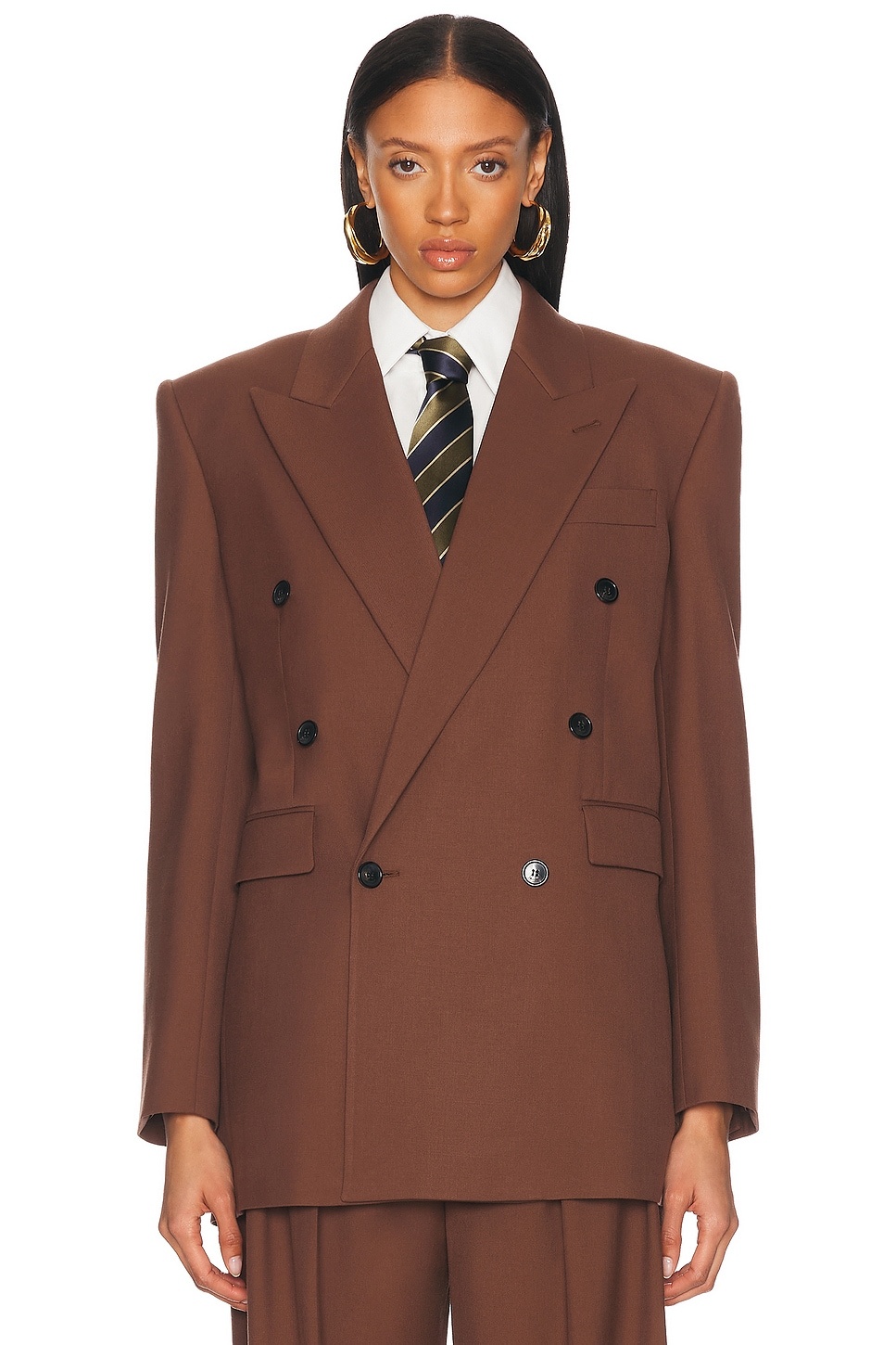 Details - Self: 100% wool - Lining: 97% cotton, 3% elastane - Dry clean only - Front double-breasted closure - Structured padding at shoulders - Breast seam pocket - Front flap pockets - Buttoned cuffs - Twill fabric - Item not sold as a set - This item is not available to ship to Indonesia - Made in Italy - Our Style No. SLAU-WO263 - Manufacturer Style No. 823616-Y405W-2715